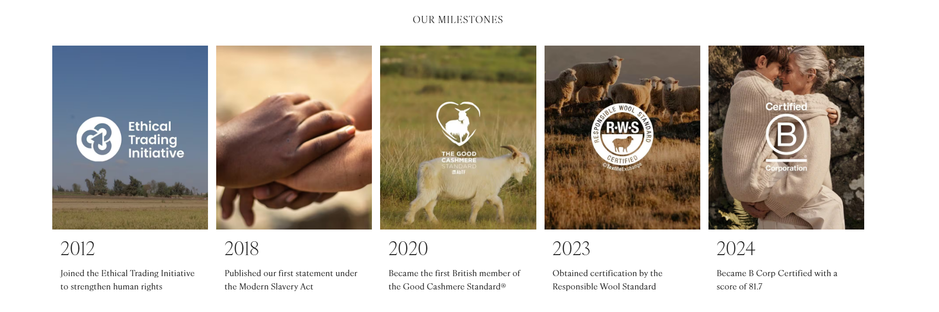 Moving towards lower impact materials and manufacturing processes. Enhancing supply chaintransparency and traceability
